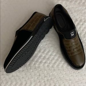 Brown and black leather sneaker loafers. Brand new, never been worn.