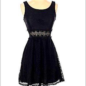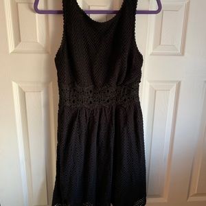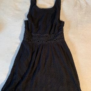 Super cute fun and flirty. Gently used but in great condition no visible signs of wear! All black crochet dress with peek a boo flower stomach detailing