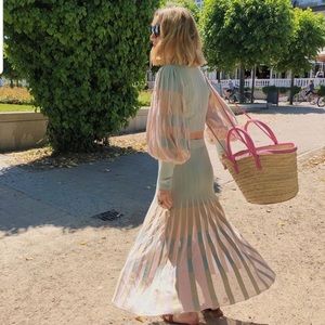Zara pleated midi skirt in pastel green with sheer pleats on lower portion of skirt