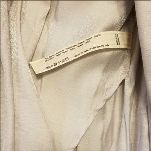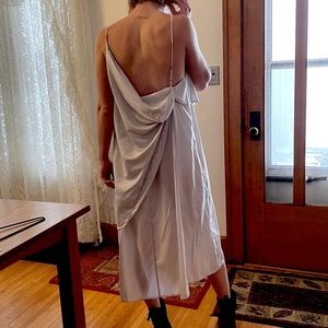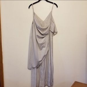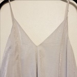 NWOT, This is a gorgeous Free People v-neck dress with adjustable thin straps. Fabric is shimmering silver and drapes and catches air beautifully.