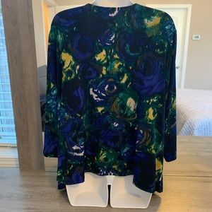Preowned Cato women 22/24w polyester & spandex plus blouse in very excellent condition. The sleeves are 18” long and under arm to under arm is 28” flat