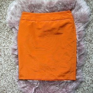 Fun pencil style skirt in orange with raised square design from The Limited.