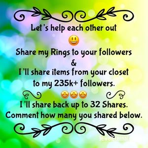 Share any of my Rings that I made in the Jewelry posts below this & I’ll share the same amount of items from your closet to my 235k+ Followers!