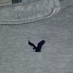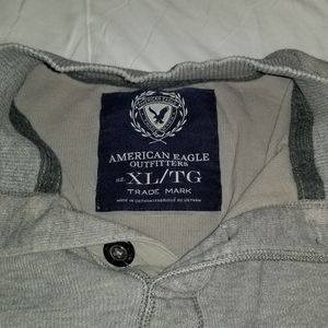 Pullover sweater by American Eagle. light wear showing by wrists. This also runs pretty SHORT--please note. Please, PLEASE ask any questions. Happy to measure, or provide more pics too.