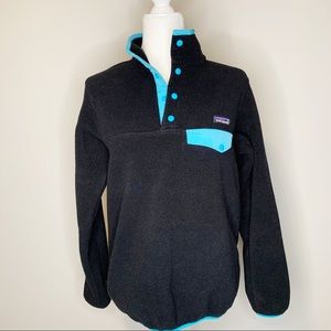 Excellent used Condition Women’s Patagonia Lightweight Black with Light Blue Accents Synchilla Snap-T Neck Fleece Pullover Jacket in Size Small