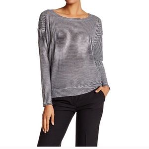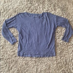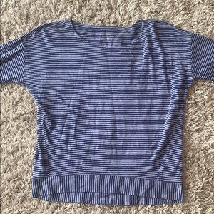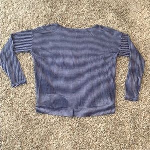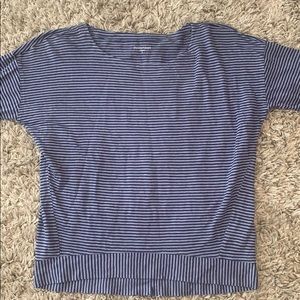 Eileen Fisher crew neck long sleeve organic linen top, size S. Navy blue stripes with gray and slight high low hem. In excellent condition.