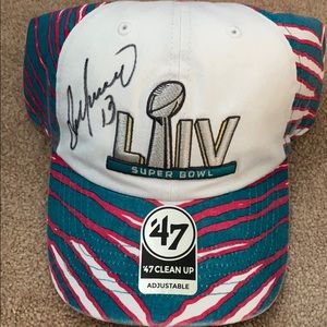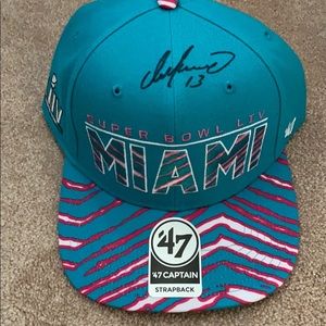 Collaboration between '47 and zubaz hat, with official Dan Marino signatures on all 3. All hats are adjustable. Offers welcome