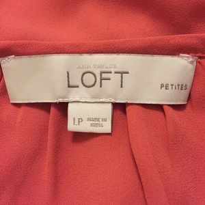 Ann Taylor Loft coral long sleeve top. Hidden button placket. Gathers around neckline.