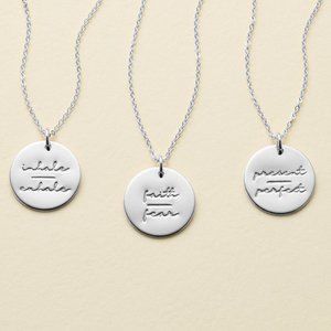 đ¸ NEW minimalist necklace! This dainty, sterling silver, bohemian charm necklace is perfect for layering. Elegant & simple pendant with cursive reminder for inner peace. Beautiful as a gift to yourself or another!