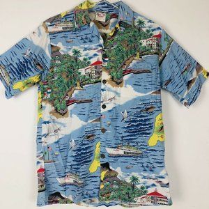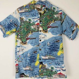 Go Barefoot Mens Hawaiian Catalina Island California Button Shirt USA Size S