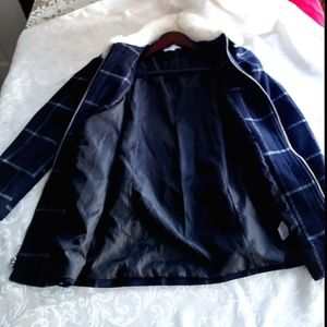 Coffeeshop Kids sz L navy/white plaid coat. Preowned.