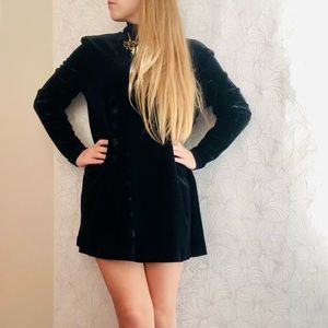 Vintage Black Velvet Mockneck Long Sleeve Mini Dress