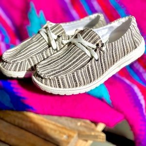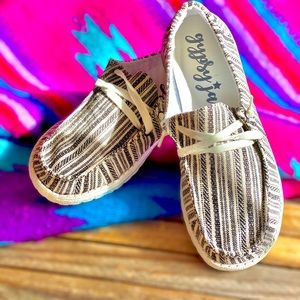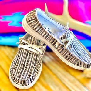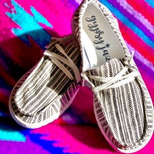 Another great pair of Gypsy Jazz slip on shoes! Eeekkk! I can’t believe they are finally here! They are so adorable and so stinking comfy! These shoes are trending big time right now! No, not trending... Raging! You definitely want a pair of these! 😍🥰😍 They are lightweight slipons with a memory foam insole, knitted laces, very cushiony and easy to throw and pair with just about everything. You’ll love them! ❤️💞❤️ Comparable to Hey Dudes* More pics to come.