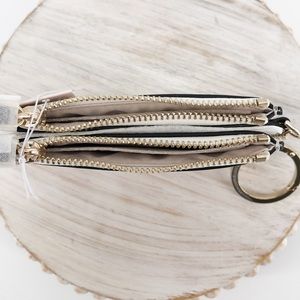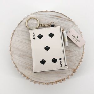 Kate Spade Black White Multi Lucky Draw Key Fob Double Zip Card Coin Purse