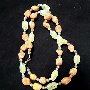 Jasper & Precious Gem Stone Necklace & Earrings. Prehite with Autumn Jasper and Leopard Jasper. Earrings measure 1.5" long. Necklace is 32" long. No chips. Excellent condition!