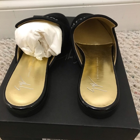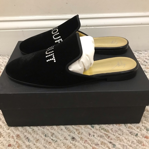 Giuseppe Zanotti black velvet “bonjour” crystal mules clog slippers