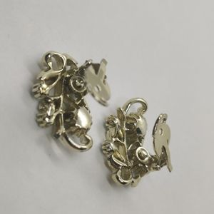 Vintage 60s Aurora Borealis crystals clip on earrings made out of gold metal with beautiful floral motif, one earring is signed with C (Coro, American costume jewelry brand), in great vintage condition, very light aging/wear signs, fit comfortably, come from a non-smoking home, measure 3 x 2 cm.