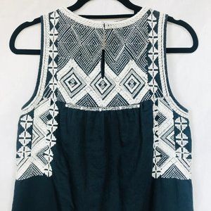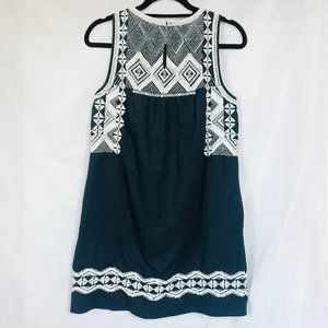 Madewell Onyx (Black) Embroidered Stitchtake Bohemian Style Sleeveless Linen Blend Sheath Dress, Size XS