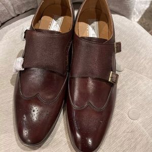 IKE BEHAR 'Hart' Double Monk Strap Shoe Brown Leather Men's Size 9.5 . New in a box