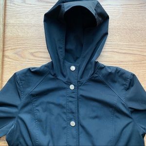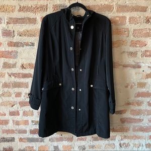 London Fog Long Hooded Windbreaker Raincoat - Black