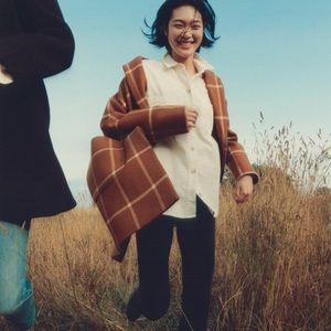 Made of our superwarm signature Italian Insuluxe fabric, this versatile windowpane jacket gives a nod to the '70s blanket coat. Slightly oversized to layer over sweaters, it has extra-deep patch pockets on the outside (plus one for your phone inside).