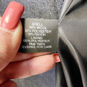 @carlysuzuki322 The last photo in the listing shows the tag with the material description. It says that the exterior is made of wool, polyester, and rayon. And the interior's lining is made from polyester.