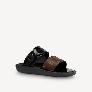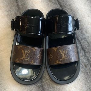 { Louis Vuitton } Sunbath Flat Mules Black Sandal