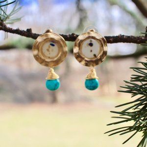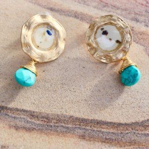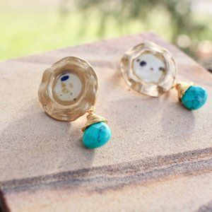 New Gold Crushed Shell Turquoise Stone crystal Dangle Earrings