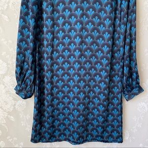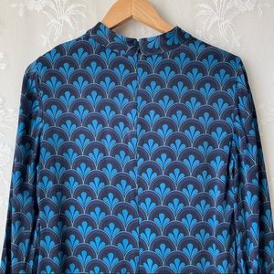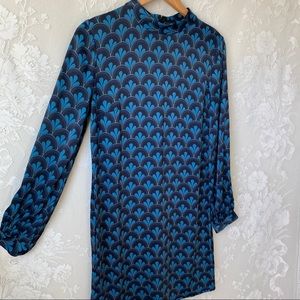 Boden Blue Mod Print Mock Neck Long Sleeve Dress 6