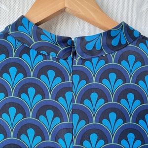 Boden Blue Green Black Mod Print Long Sleeve Mock High Neck Dress