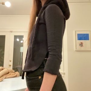 Thick cropped sweatshirt with half detached waistband.