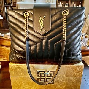 Bag features Gorgeous buttery soft Lambskin leather with gold hardware and beautiful chains. Large and Very roomy with lots of compartments.