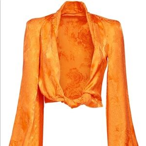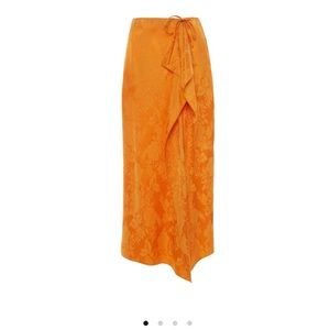 Hi, I’m selling this orange Attico tie-detailed draped satin-jacquard midi skirt and its matching top. They look fantastic on! I really loved this outfit the second I put it on, and it can be styled with so many different colors. I just had to reorder a size up because it’s a little snug in the IT 36 for me. I normally wear a size 2, but this is a size 0. You won’t regret buying it! Im selling the top ($899) & skirt, and I would highly recommend buying both, but message me if you need just one.