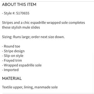 Kate Spade Laila espadrille stripe mule size 7. New in the box. Adorable and comfortable, The description is in one of the photos.