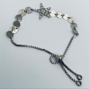 925 Sterling silver sequins , cubic zirconia stones , size adjustable slider bolo lock compass bracelet in free gift box