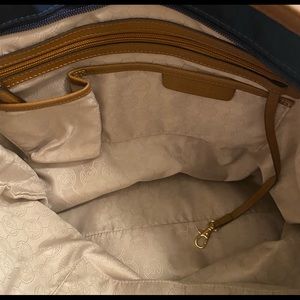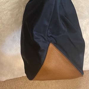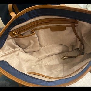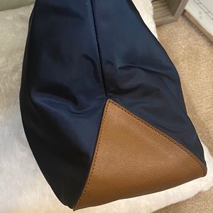 MICHAEL Michael Kors creates a must have nylon tote that makes a classic look for everyday style. with a logo lock dangling from the front zip pocket and faux leather framing the lightweight body. Top zip closure. Interior zip, wall and cell phone pockets; key clip. Logo-jacquard lining. Nylon/PVC.15"W x 14"H x 5.5 "D. (Interior capacity: large.) 8.75 " strap drop. Color: Navy Blue