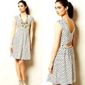 Anthropologie Postmark black and white polka dot tank dress with criss-cross back straps with buttons. Good condition, no visible signs if issues.