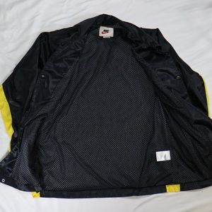 Excellent condition black and yellow jacket with large spellout NIKE on the back, and embroidered black Nike swoosh on the left chest on the front. No stains, spots, holes, or discoloration spotted. Smoke and pet free as always!