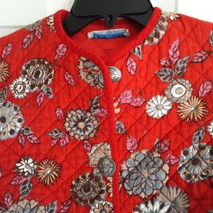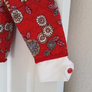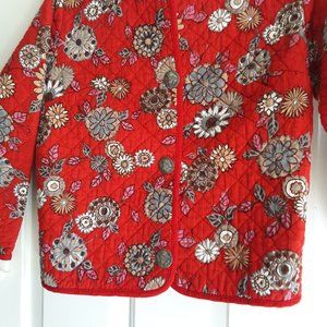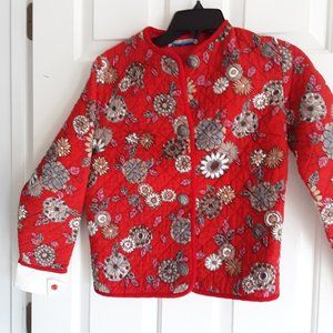 Ubermeyer cute quilted jacket in size S. Colors include red, brown, grey and white.