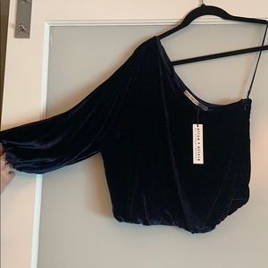 Alice & Olivia one shoulder velvet top - navy/midnight color. Never been worn, new with tags! Size xs