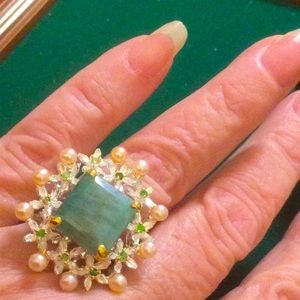 HUGE GENUINE 8 CTW of Genuine Emerald & Pearl Ring