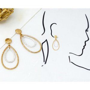 Two Tone Double Tear Drop Hammered Casting Dangle Earrings