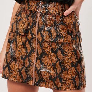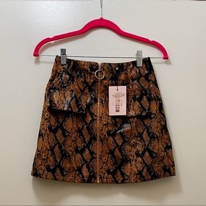 New with tags! Orange snake skin velvety skirt with cute pocket and zipper detail