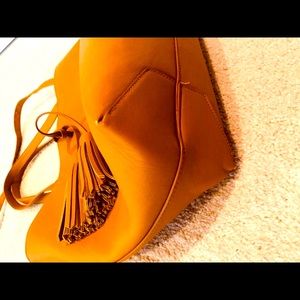 Really soft nice Merona extra large tote. Very comfortable to wear on shoulder- has tote straps or over shoulder strap. PU leather very soft. Good used condition- see pics. Awesome front tassels for style and charm. Great price..