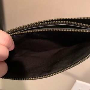 Coach Space Galaxy wristlet with stars, moon, planet detailing. EUC used a handful of times but looks brand new. Two zipper pockets, one has card slots. In between the zipper pockets is an open pocket with magnetic closure. Has snaps on the sides to make it expandable. Has a removable wristlet strap that has glitter detailing. Approximately 8”length, 4.75”height, and 1.5” width.