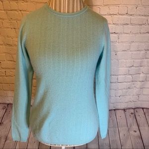 Long sleeve, crewneck cashmere sweater. Good condition some flaws not holes in knit & raveling at right cuff. See picture. Measurements: 18” armpit to armpit, 24” sleeve w, 22” long.