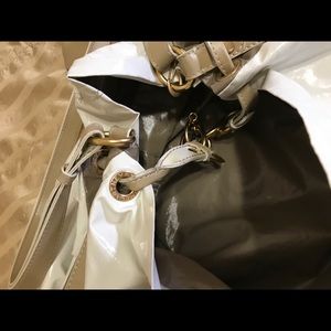 VERY RARE!! Very gently used large ivory Stella McCartney hobo bag with gold toned hardware, single flat shoulder strap, single zipper interior pocket, single zippered pouchette and magnetic closure at top. Please review pictures: Interior pouchette (coin purse) has a small mark and there is small marks on the interior. Stella McCartney uses vegan materials. PoshMark will authenticate at no charge to you. Already Authenticated by Real Real when I purchased it 12/20/2017 and PoshMark will authenticate this lovely bag for FREE!