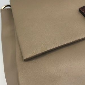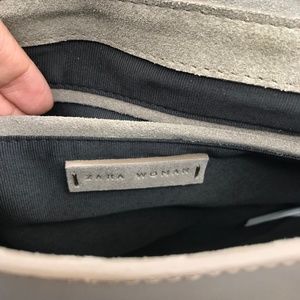 Zara Accessories bag! Tan colored with brown and gold buckle detail. Multi strap options (2 straps to choose from!). Great for everyday wear or a casual look for going out. Good condition. Minor indentations, little chips on bag (as pictured close up), all from being stored in my closet. Please carefully view all pictures for all details and conditions mentioned. Super stylish, you can never go wrong with a cute bag!