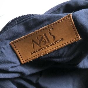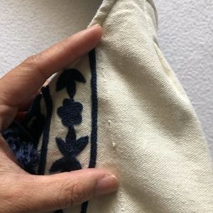America & Beyond Blue Floral Embroidered Fringe Lined Canvas Tote Shoulder Bag Approximately 15" across the bottom