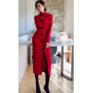 Long Sleeve Midi Dress With High Collar With Opening.